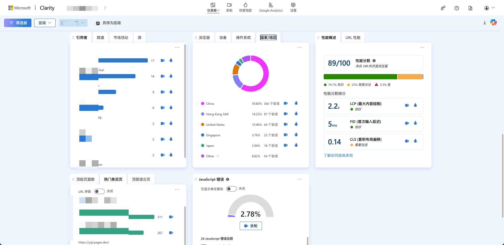 Microsoft Clarity 有着明显的优势。首先,免费的特性让所有规模的企业都有机会使用,无需承担经济成本就能开启用户行为分析之旅。其次,它操作简单易上手,友好的界面和便捷的设置流程使得新手也能快速掌握并运用起来。再者,其所提供的数据直观可视化,无论是热图还是录屏回放,都能让企业很直观地看到用户行为情况,便于理解和分析。
