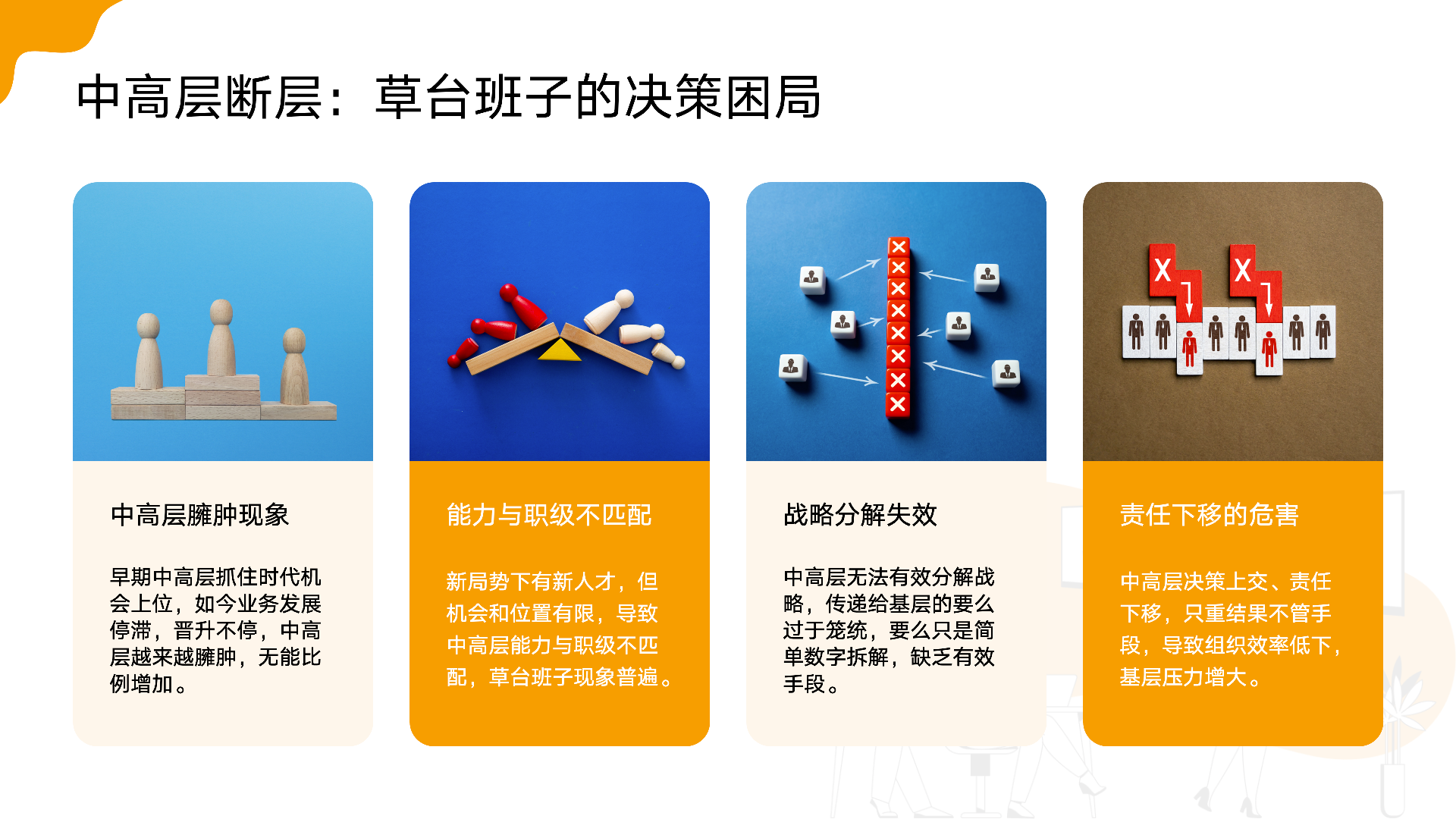 • 中高层能力断层:早期管理者难以适应新环境。
