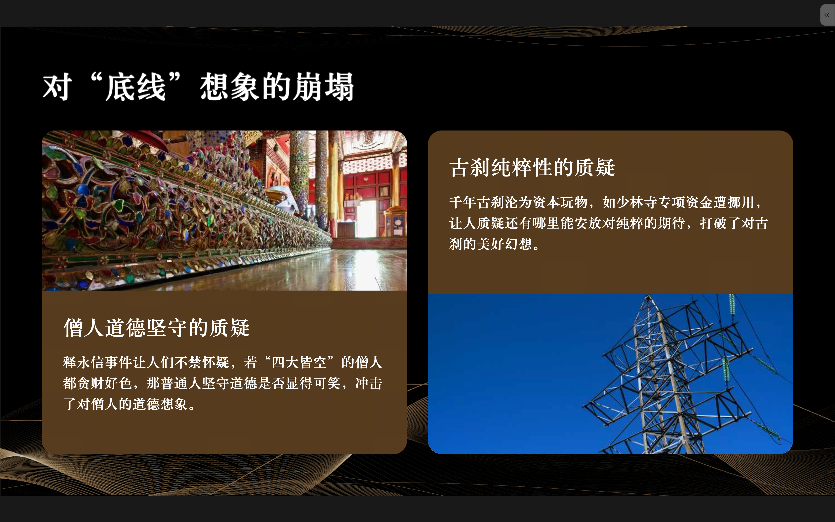 看到通报那一刻,我对着屏幕愣了很久。 曾以为少林寺是浊世中的灯塔,如今它成了欲望的灯塔——照亮了资本如何腐蚀最后一片净土。 崩塌的不是一个人,而是我们对“底线”的想象: